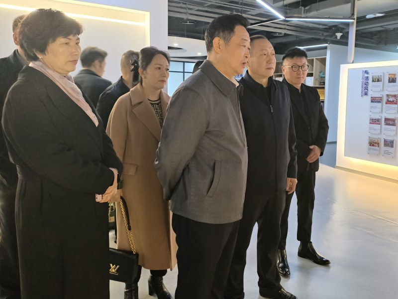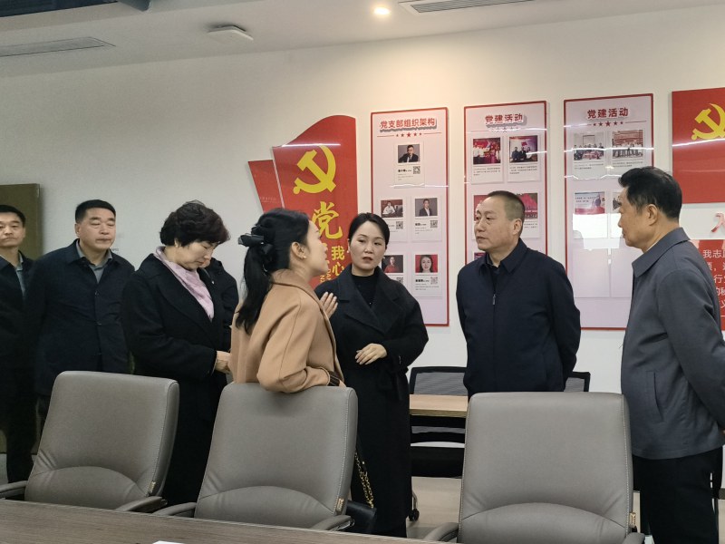 秘书长马俊引导工作组成员参观商会文化墙、内设机构、党建文化宣传墙,向一行领导详细介绍了商会发展情况及商会文化。