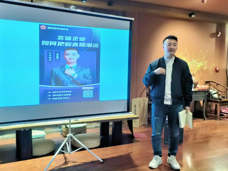 为实体企业把握直播潮流,合理运用自媒体促进企业营销、运营新方向发展,12月1日下午,特邀商会会员、重庆有量文化传媒有限公司负责人党金胜在重庆市沙坪坝区喜舍空间为商会会员企业代表带来“实体企业,如何把握直播潮流”交流分享活动。我会秘书长马俊,商会理事、会员20人参加本次活动。