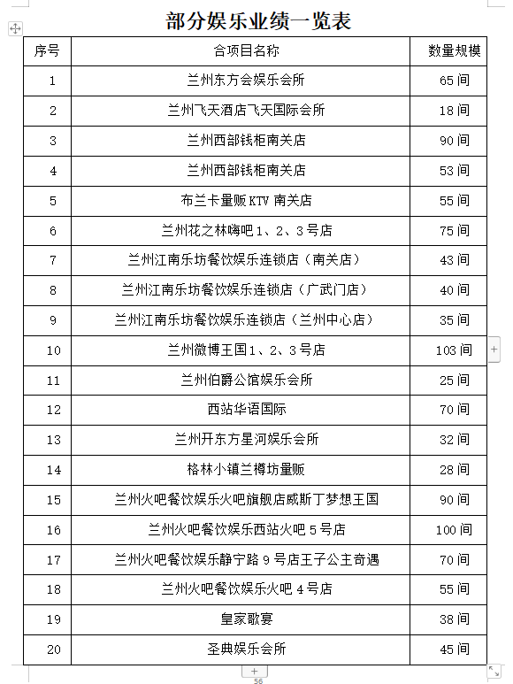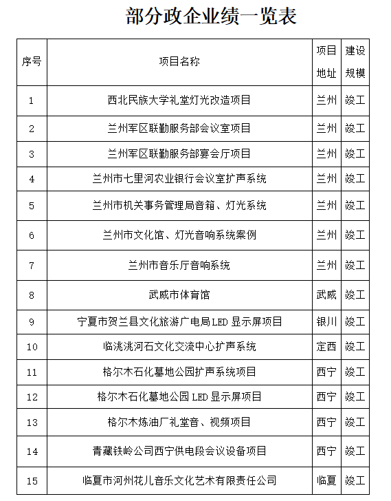 部分业绩一览表
